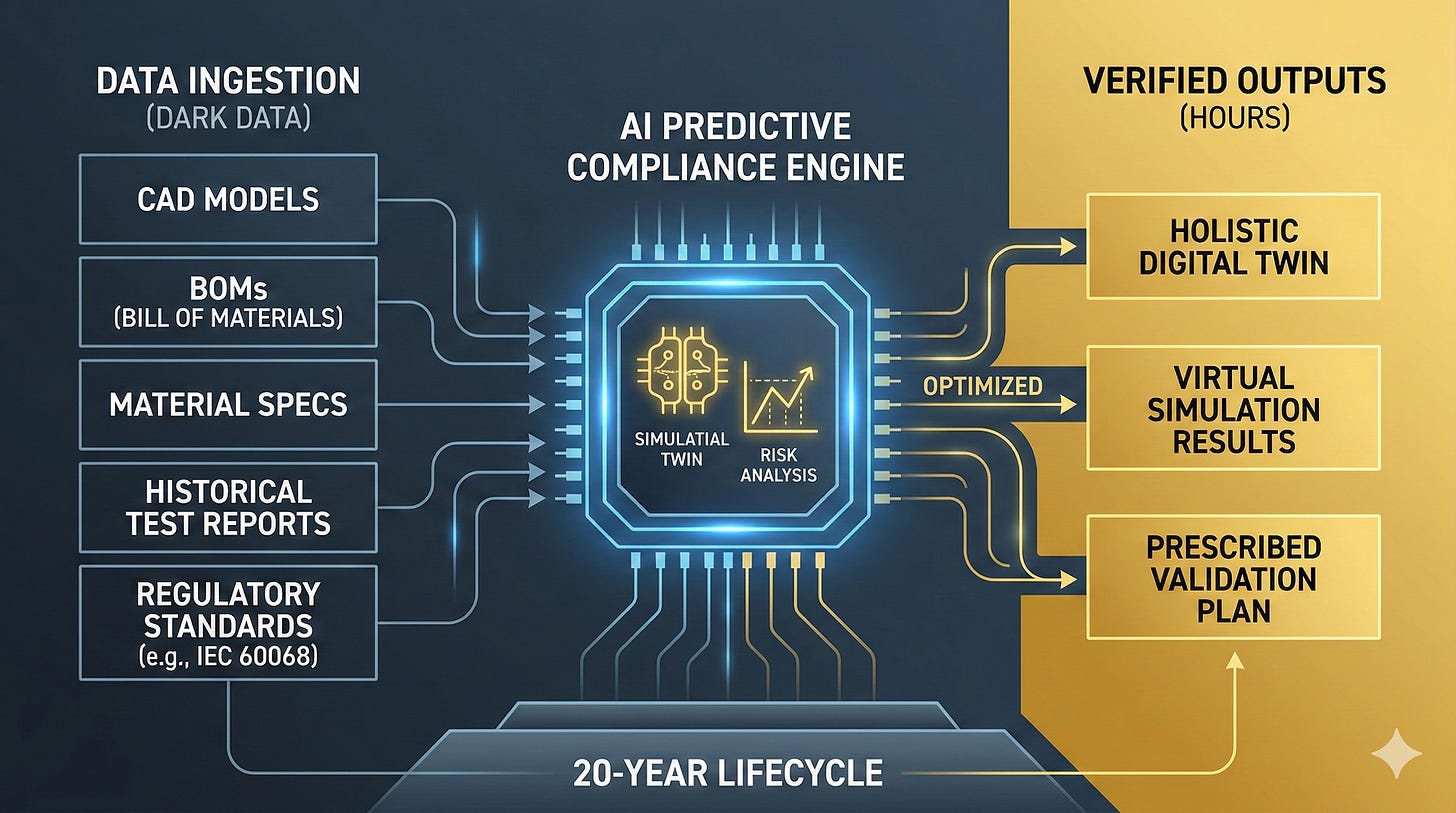 We are ready to move from a reactive burden to a proactive, data-driven approach by developing a Predictive Compliance Engine. This could be a centralized intelligence hub trained on design specifications, material properties, CAD models, and historical validation results.