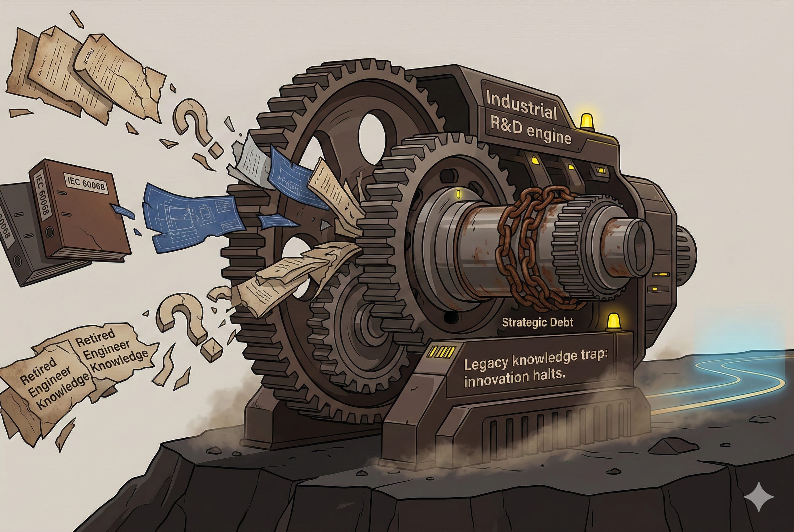 In industrial R&D, we manage products with lifecycles of 15–20 years and beyond. This longevity is a mark of quality, but it creates a massive strategic bottleneck: fragmented design knowledge. When a standard like IEC 60068 updates or a component becomes obsolete, the original design intent is often lost as personnel move on. This forces teams into: