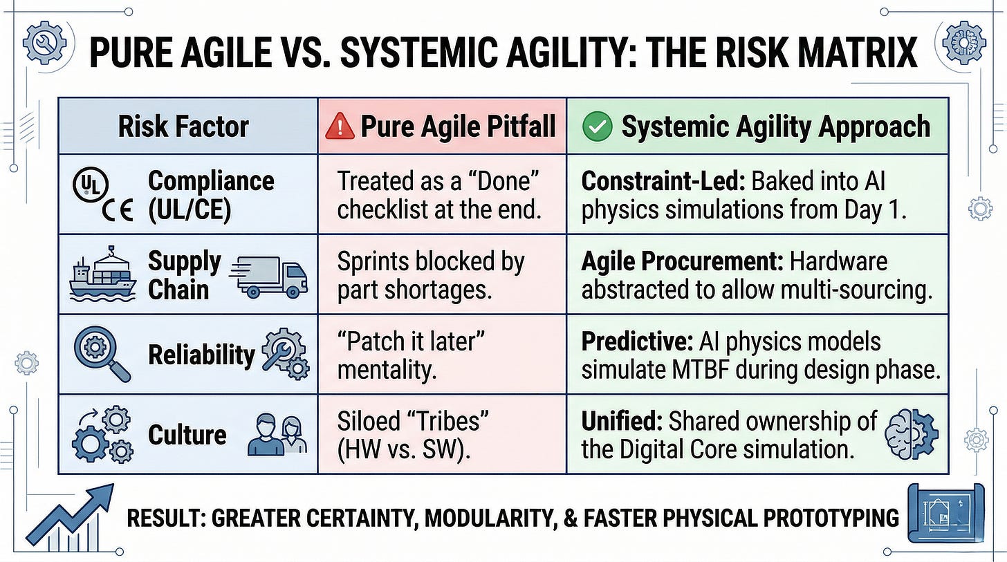 We don’t need “more Scrum.” We need a system of work that respects the physics of atoms while leveraging the speed of bits.
